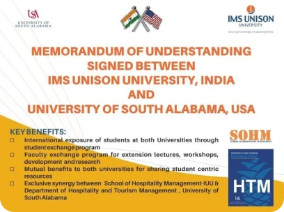 MOU between IMS Unison University, Dehradun and Hotel Grand Mercure Dubai has been successfully signed for internship placements.