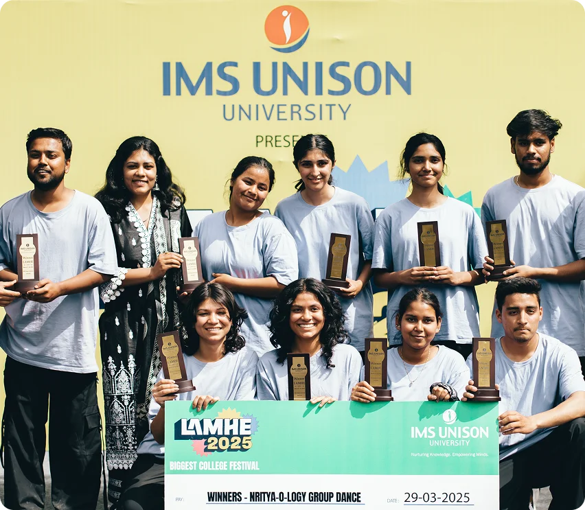 IMS Unison University is a trusted name in higher education with a legacy of shaping capable, confident professionals since 1996. As a leading multidisciplinary university, IUU brings together rigorous academics, practice-first learning and a modern campus ecosystem that prepares students for real professional challenges.